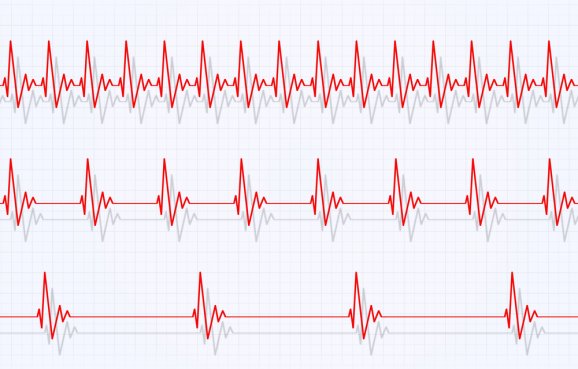 Ilustrace srdce pulzujícího rychle (nahoře), normálně (uprostřed) a pomalu (dole) / Shutterstock